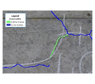 3. Defect Detection: Employs AI and deep learning to detect and measure crack width with 99.5% accuracy, differentiating cracks from dirt and joints.