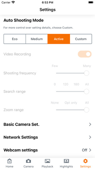 The camera's settings are also accesible via the app.