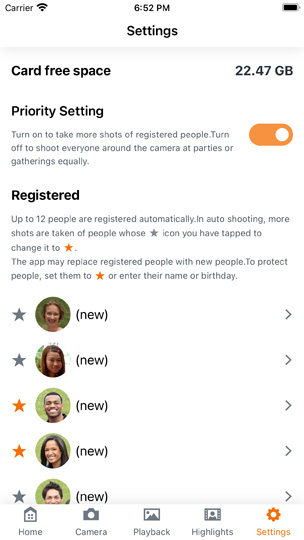 The Connect App allows you to mark your favourite registered person and customise the automatic shooting style!