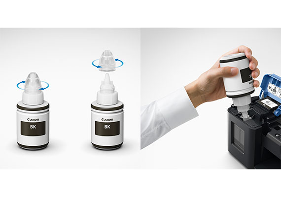 The ink bottles come with a special tip design that reduces spillage during ink refilling.