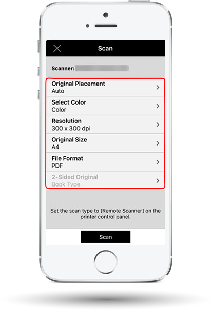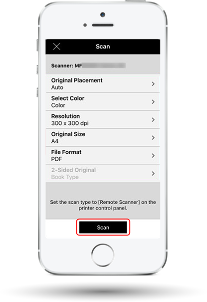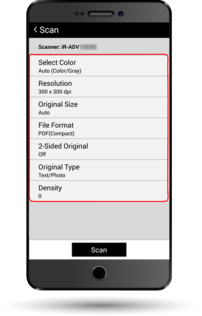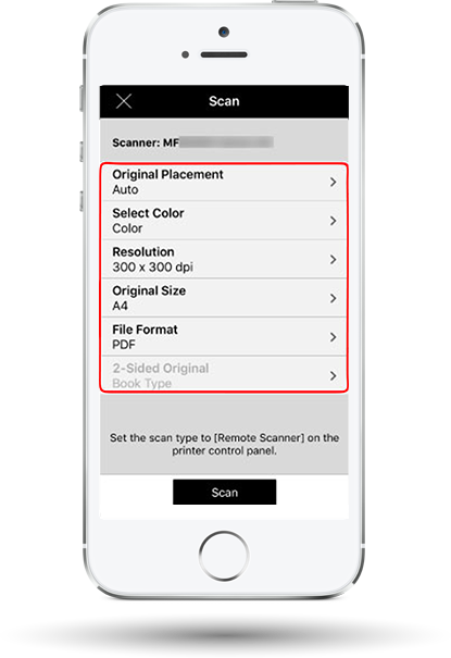 For imageCLASS, scan settings must be first configured on the Canon device, followed by setting configurations on the mobile terminal side.