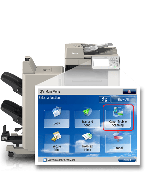 With imageRUNNER ADVANCE via Canon Mobile Scanning MEAP