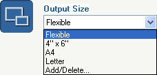 - When the Print (300dpi) option is selected, you can set the output size to match standard paper formats. The scan area is enlarged or reduced to fit the output to the specified paper size. You can set your own output sizes with the [Add/Delete] option.