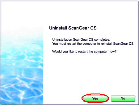 After ScanGear CS is uninstalled, a message prompting you to restart the computer will be displayed.