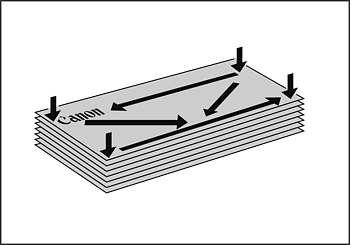 Press all the way around the envelopes to remove any curls and expel the air from the envelopes. Make sure that the stack is flat before loading it in the machine.