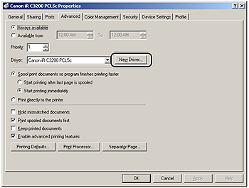 If you are using a shared printer in the Print Server (Point and Print) environment, it is necessary to install the Canon Driver Information Assist Service in the server PC in order to use the Job Accounting feature.
