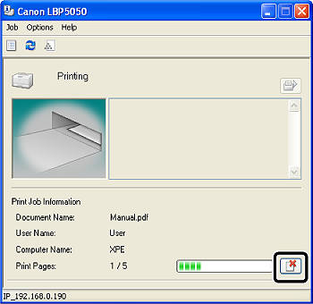 - Depending on the settings for the [Settings of the Cancel Job Key] dialog box in the Printer Status Window, you may not be able to cancel a job.