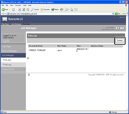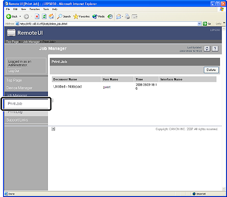 If you are using the printer in a network environment, you can cancel a print job using the Remote UI (the software that allows you to manage the printer using a web browser).