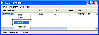 While another user's job is being printed, you cannot cancel the job. However, you can cancel the print job from the print server if the printer is shared on a network.