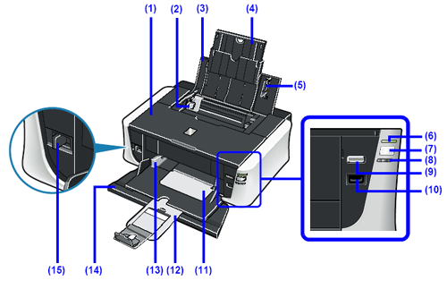 Open when replacing the ink tanks, or when removing jammed paper.