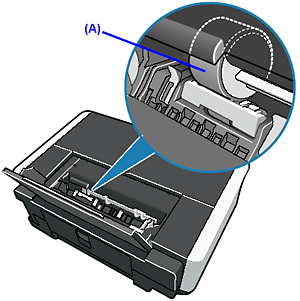 If the problem is not resolved, wipe the paper feed roller (A) located on the right side inside the Rear Tray with a moistened cotton swab or the like. Rotate the roller (A) manually as you clean it. Do not touch the roller with your fingers; rotate it with the cotton swab. If this does not solve the problem, contact your Canon Service representative.