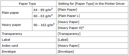 * If you want to improve the fixation when printed with [Heavy Paper] selected, select [Heavy Paper H].