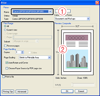 This section describes the procedure for printing from an application, taking Adobe Reader 8.0 as an example.