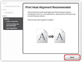 8. When the Print Head Alignment Recommended screen appears, click Next.