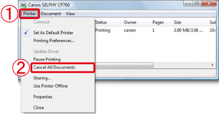 - If you cannot delete the documents in the print queue even after having performed these procedures, restart the computer and delete the documents again.