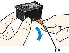 (1) Take a new FINE Cartridge out of its package and remove the orange protective tape (D) gently.