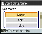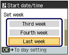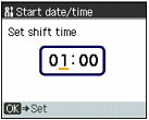 (Down) button to select Start date/time, and press the OK button.