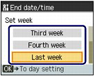 (Down) button to select the week when summer time ends, and press the OK button.