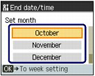 (Down) button to select End date/time, and press the OK button.