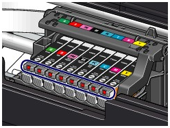 (Push) on the ink tank until the ink tank clicks into place. If it does not click into place, make sure that the orange protective cap has been removed from the bottom of the ink tank. If the function for detecting the remaining ink level is disabled, replace the ink tank with a new one.See [ Replacing an Ink Tank ].