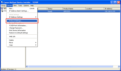 11-B-2. Select [Protocol Settings] from the [Device] menu.