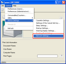 2. From the [Options] menu, select [Device Settings] → [Network Settings].