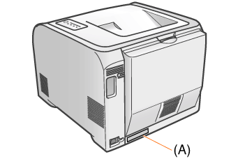- The MAC address is listed at (A) on the printer.