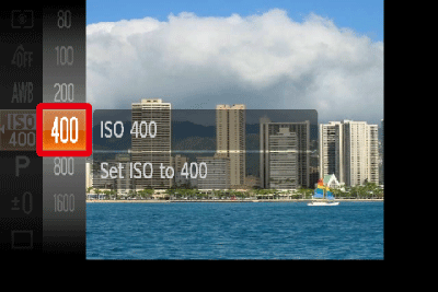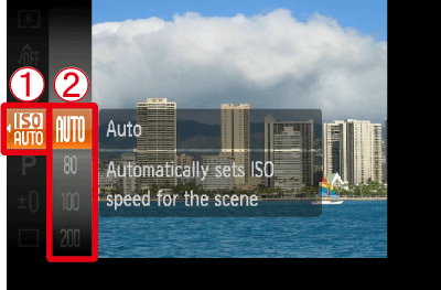 ) appears when you press the <Shutter Button> halfway, it is recommended to gradually raise the ISO speed in increments such as [ISO 80], [ISO 100], etc., and then set the [ISO Speed] when the camera shake warning icon (