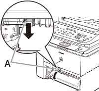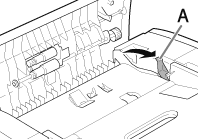 3. Open the duplex print transport guide, holding its tab (A) on the left side inside of the machine.