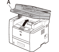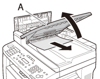 6. Remove Jammed paper while lifting the document feeder tray, holding it by its grip (A).