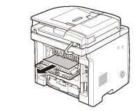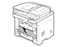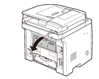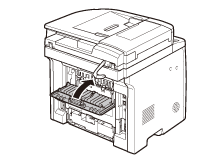 Rear Side of the MachineWhen <OPEN PRINTER COVER/OPEN REAR COVER> or <PAPER JAM/LIFT PANEL TO OPEN> appears on the display, remove jammed paper from the rear cover and duplex unit cover.