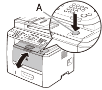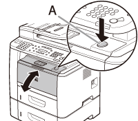 If you are using the multi-purpose tray, close it before opening the front cover. To open the front cover, push the open button (A).