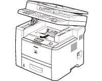 When <OPEN PRINTER COVER>, <CHECK DOCUMENT>, <PAPER JAM/LIFT PANEL TO OPEN>, <FEEDER PAPER JAM/CHECK THE FEEDER> or <DOCUMENT TOO LONG> appears on the display, remove jammed paper from the machine first, then from the paper cassette or multi-purpose tray if necessary.