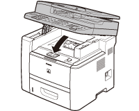 Front Side of the MachineWhen <OPEN PRINTER COVER> or <PAPER JAM/LIFT PANEL TO OPEN> appears on the display, remove jammed paper from the inside of the machine.