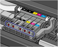 (Push) on the ink tank until the ink tank clicks into place. If it does not click into place, make sure that the orange protective cap has been removed from the bottom of the ink tank. If the function for detecting the remaining ink level is disabled, replace the ink tank with a new one.