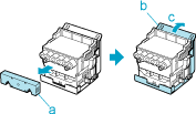 - The inside surface of the Protective Part (a) and Protective Part (b) is coated with ink to protect the nozzles. Be careful not to touch these surfaces when removing the caps.