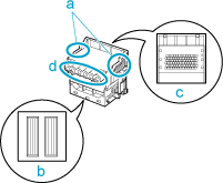 - Never touch the ink supply section (d). This may cause printing problems.