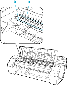 - Do not touch the Linear Scale (a) or Carriage Shaft (b). Touching these parts may damage them.