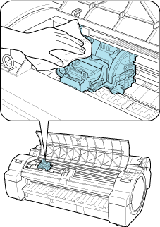 - During Printhead replacement, do not move the Carriage from the position indicated. If you accidentally move the Carriage, you will hear a warning tone, and Printhead replacement is no longer possible.
