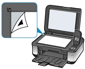 - The print head alignment sheet is placed in the correct position with the printed side facing down.