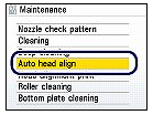 - To print and check the current head position adjustment values, select Head alignment print in the Maintenance menu.