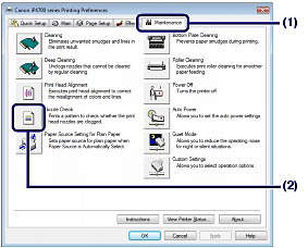 - Clicking Initial Check Items displays the items to be checked before printing the nozzle check pattern.