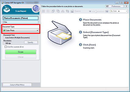 3. Point to Scan/Import and click Photos/Documents (Platen).
