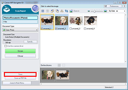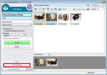 1. Select the checkboxes of the images you want to save, then click Save as PDF file.