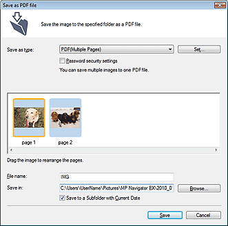 - Images can only be added to PDF files created with MP Navigator EX. You cannot specify PDF files created with other applications. PDF files edited in other applications cannot be specified as well.
