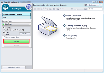2. Start MP Navigator EX and open the Navigation Mode screen.