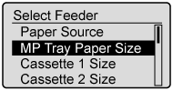 ] (Feeder Selection).2. Select [MP Tray Paper Size], [Cassette 1 Size], [Cassette 2 Size] or [Cassette 3 Size] using [