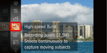 Operate the <directional buttons> up or down to select the [High-speed Burst] (
