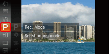 Operate the <directional buttons> up or down to select the [Rec. Mode]. (If no changes have been made so far, [Program AE] (