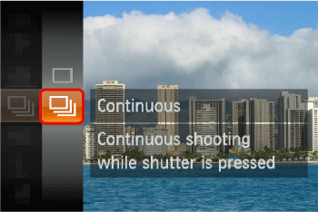 For details on the shooting modes in which the [Continuous] () settings cannot be made, please see the table at the end of this section.